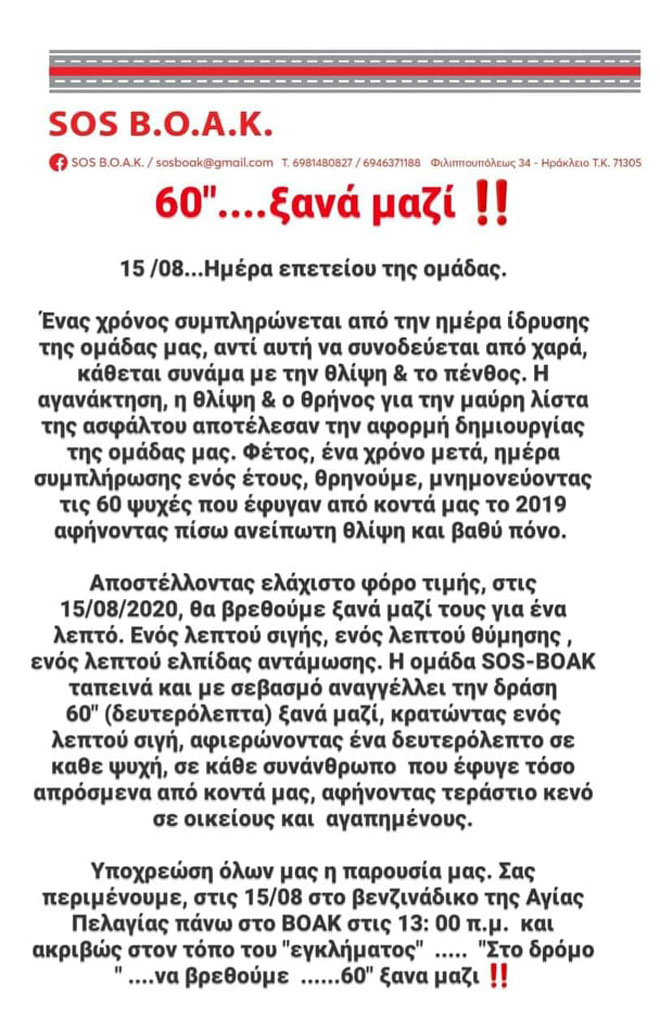 Από τον Ερωτόκριτο 87,9 και erotokritos.gr καλή δύναμη στο έργο της ομάδας σας SOS BOAK με τις ξεχωριστές δράσεις και παρεμβάσεις για να μην θρηνήσουμε άλλα θύματα στην άσφαλτο…